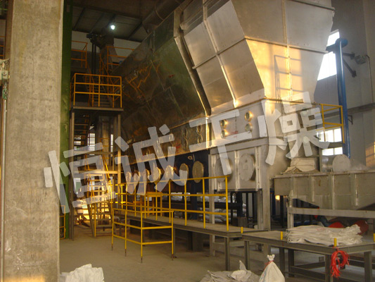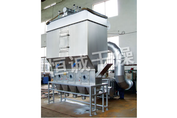 潔凈的熱風經閥板分配進入床體內,從加料器進入的濕物料被熱風形成沸騰狀態。由于熱風與物料廣泛接觸,增強了傳熱傳質的過程,因此在較短時間內就可干燥。如用連續型,物料從床體的一頭進入,經過幾十秒至幾分鐘沸騰干燥,自動從床體另一頭流出。本設備一般進行負壓操作。